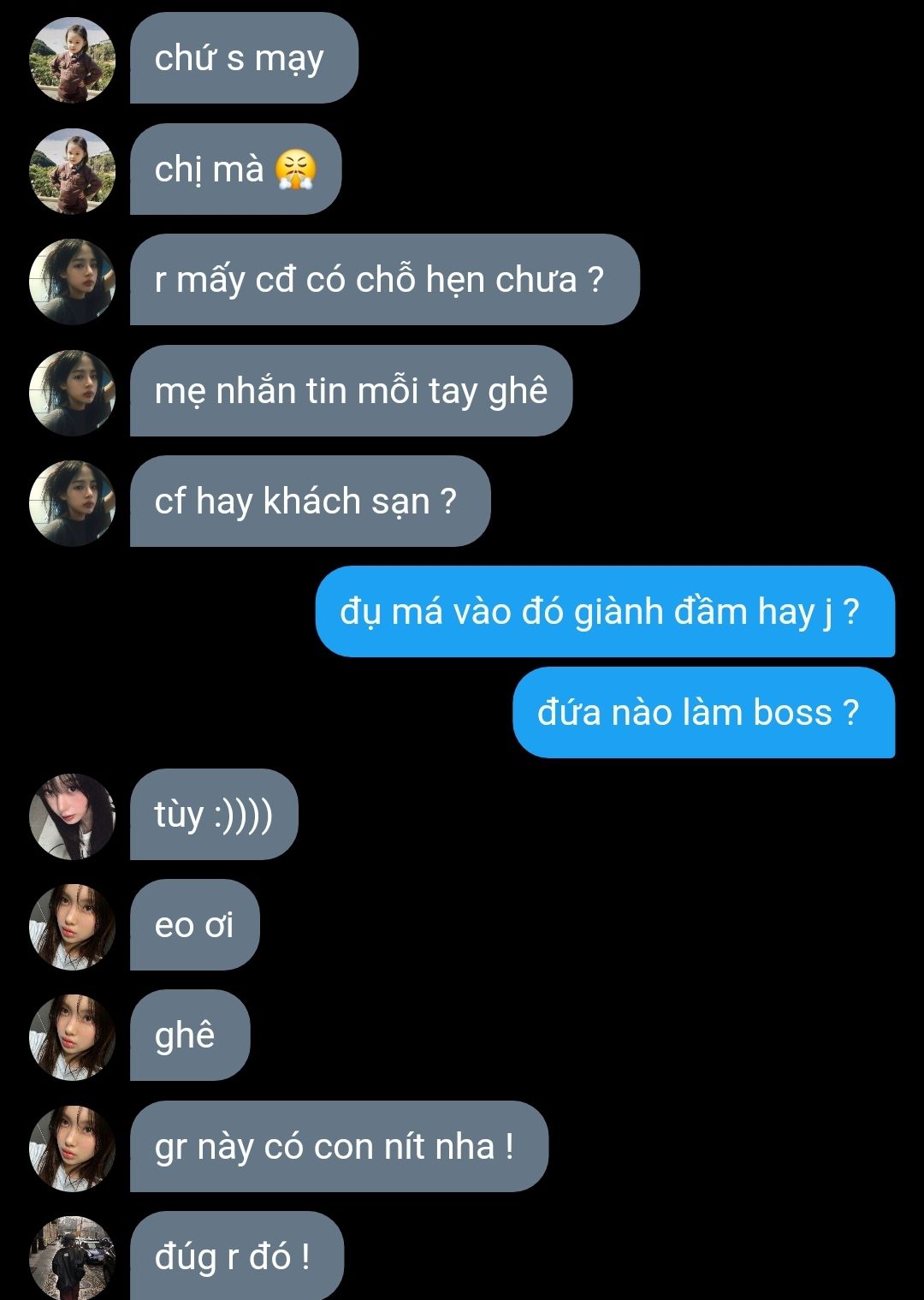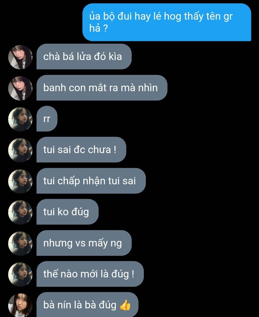 "Hả ? Chị vừa vâng á , nói lại xem nào ?"