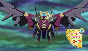 Theo Kurosaki Shun lớn giọng tuyên cáo, con chim máy giống cú mèo bay ra từ vòng xoáy Xyz.