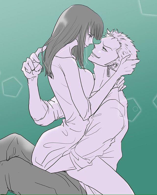 Zoro đang đứng dựa vào tàu, mắt anh hướng ra phía biển, Robin liền đặt cuốn sách lên ghế, tiến về phía anh...