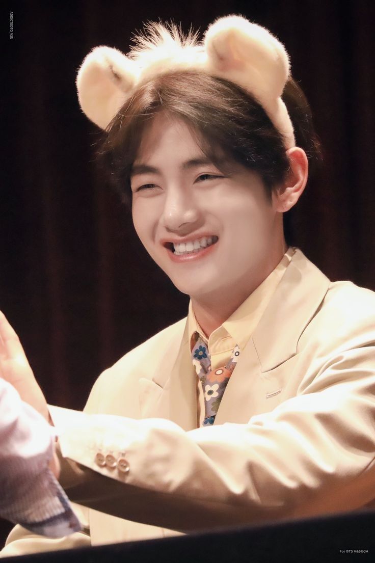 Cầm lên, lại nghĩ 1 cái gì đó. Cầm cái cài đi về phía Jungkook, nhón chân đội cho anh. Dùng hai tay đặt ở hai bên má anh vỗ vỗ nhẹ 2 cái.