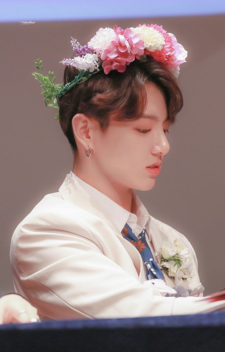 Jungkook hơi nhíu mày nhìn cô, thuận tay lấy 1 cái gương gần đó. Nhìn vào, thấy thứ trên đầu mình, hơi khựng lại.